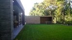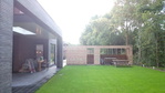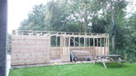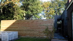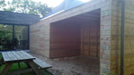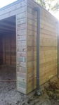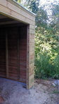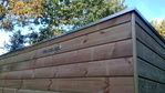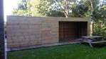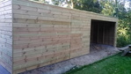 In opdracht van een particulier in Gelderland is een ontwerp gemaakt voor de bouw van een tuinberging met haardhoutopslag. De vorm moest passen bij de strakke vorm van de nieuwbouwwoning, daarom is gekozen voor horiontale plaatsing van de rabatdelen (ook bij de deur) en een smalle daktrim. De uitvoering is geheel door mijzelf gedaan.