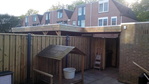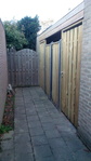 In Apeldoorn heb ik een overkapping gemaakt tussen de bergingen van twee buren. Eén van de buren heeft ook een brede, maar niet te diepe veranda laten bouwen.