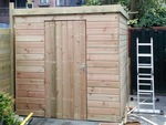 Door een goede voorbereiding kon deze nieuwbouw van een kleine schuur in een stadstuin in de randstad in één dag geplaatst worden.