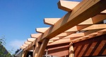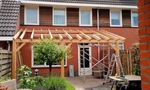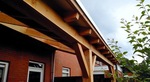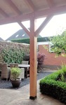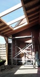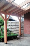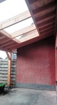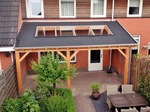 Een forse veranda met een hellend dak, over de gehele breedte van de woning. Om in alle seizoenen voldoende daglicht te houden in de woonkamer is een lichtstraat toegepast. Gebouwd in juni 2016.